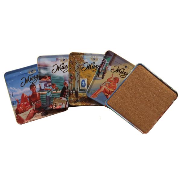 Mordern style Square Shape tin coaster with cork base set 4 in a tin box Images |